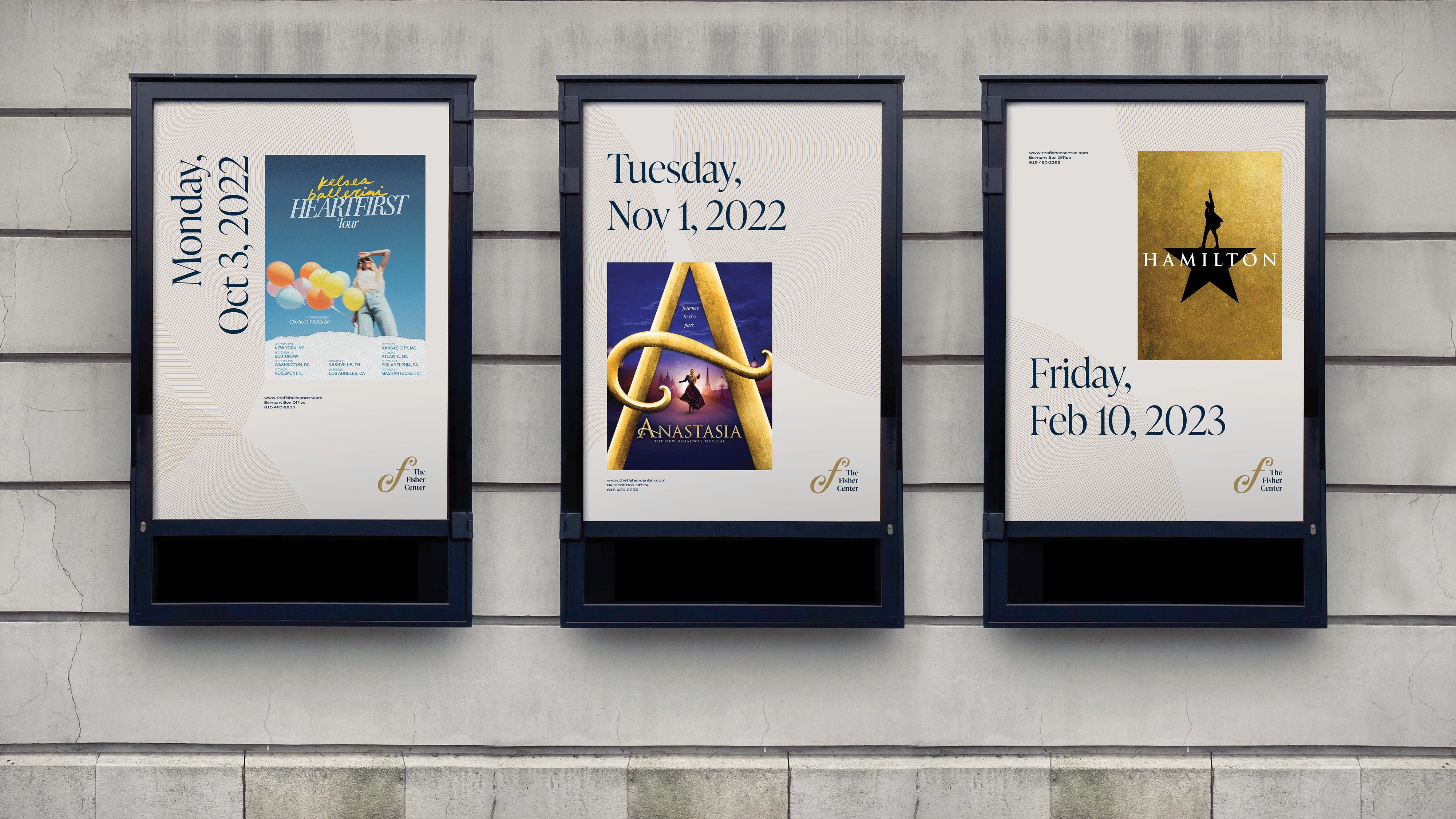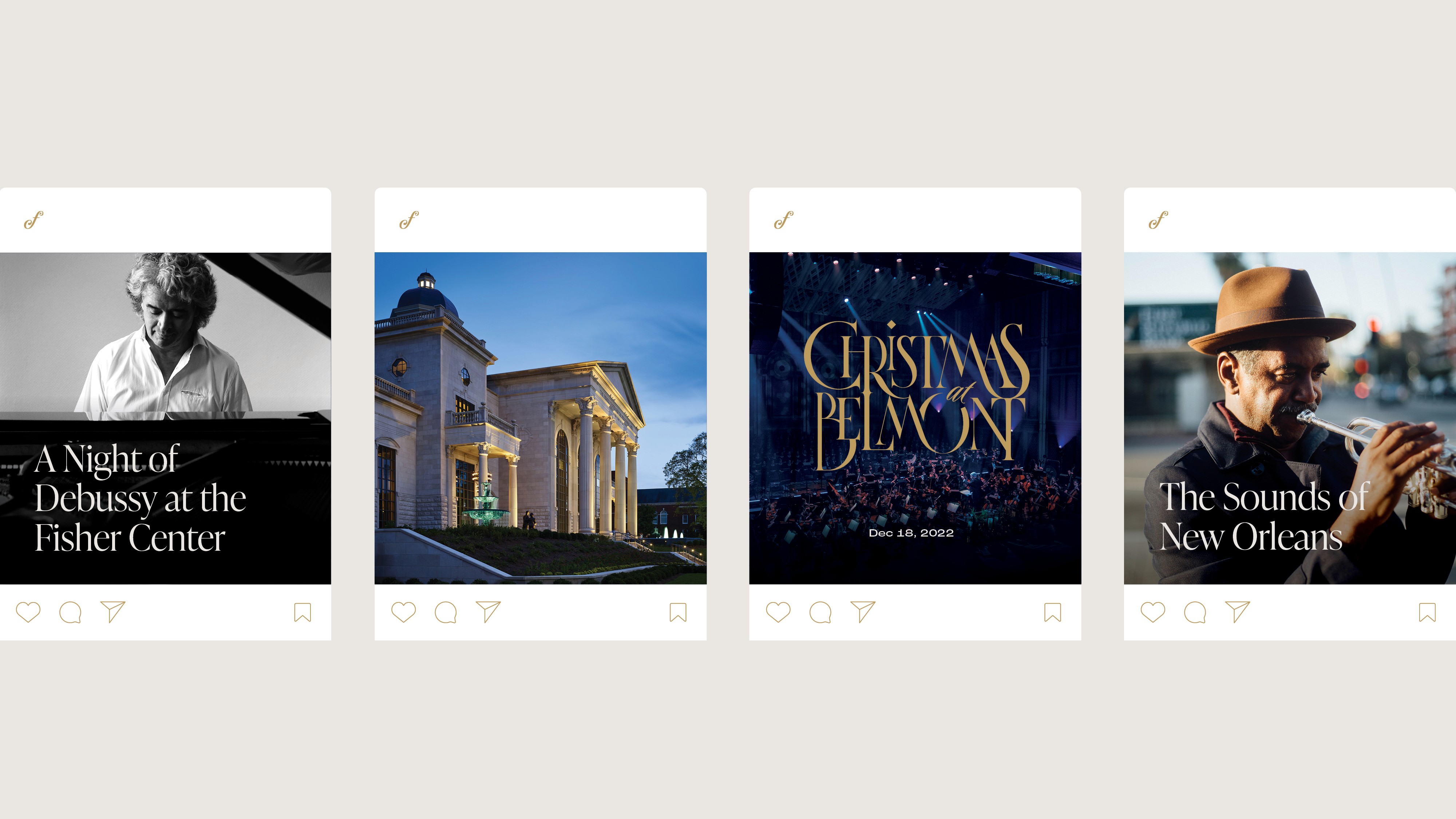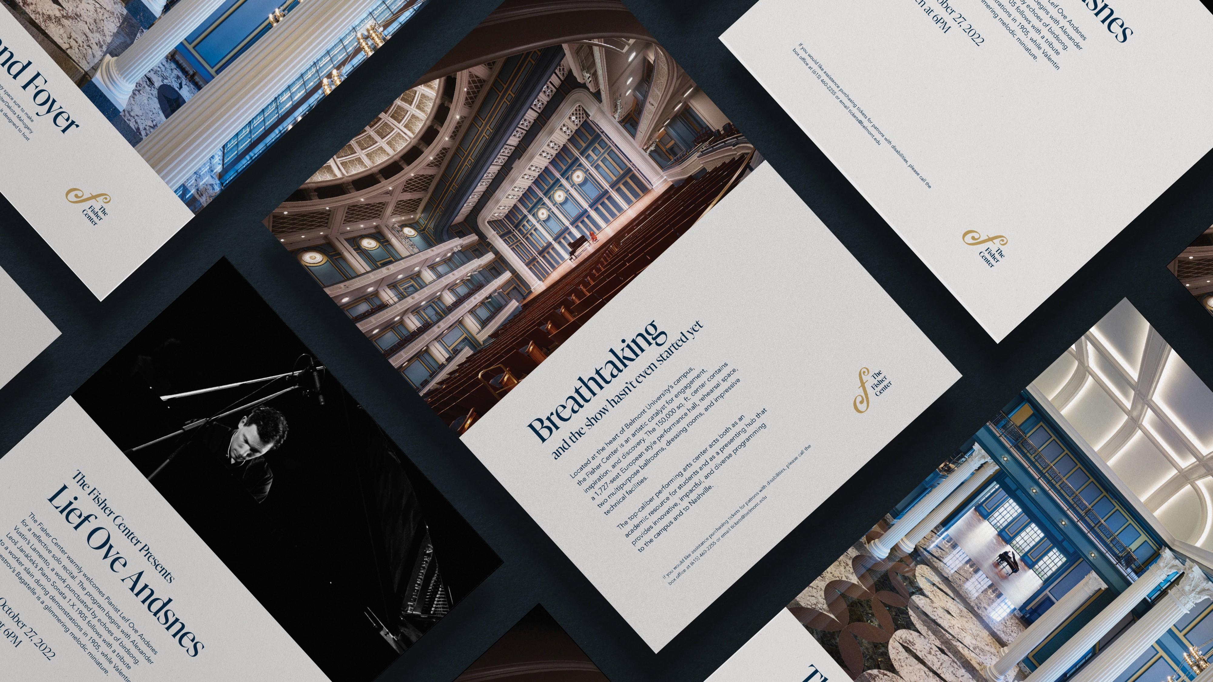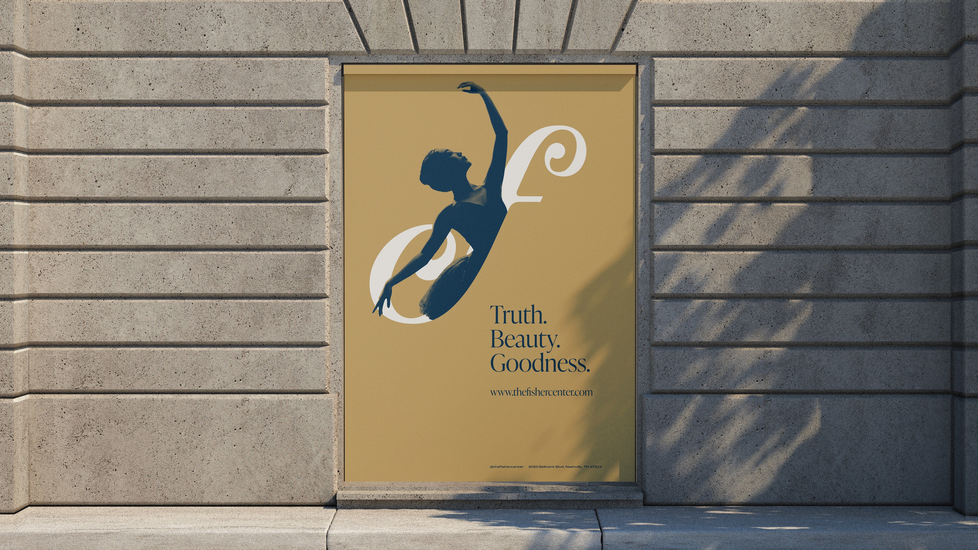 Located at the heart of Belmont University’s campus, the Fisher Center is an artistic catalyst for engagement, inspiration, and discovery. The 150,000 sq. ft. center contains a 1,727-seat European style performance hall, two multipurpose ballrooms, rehearsal space, dressing rooms, and impressive technical facilities. The iconic F lettermark draws upon inspiration from a host of musical and architectural details. At a glance, the lettermark resembles the forte symbol used in Western music notation to indicate where a particular passage is to be performed loudly and with strength. It also draws upon the unique architectural elements that adorn the majestic Fisher Center. Lastly, the accentuated angles of the lettermark draws inspiration from the graceful movement of classical ballet dancers. With these elements carefully crafted and blended together, the brand identity embodies the bold, sophisticated, and grandiose vision of the Fisher Center.
